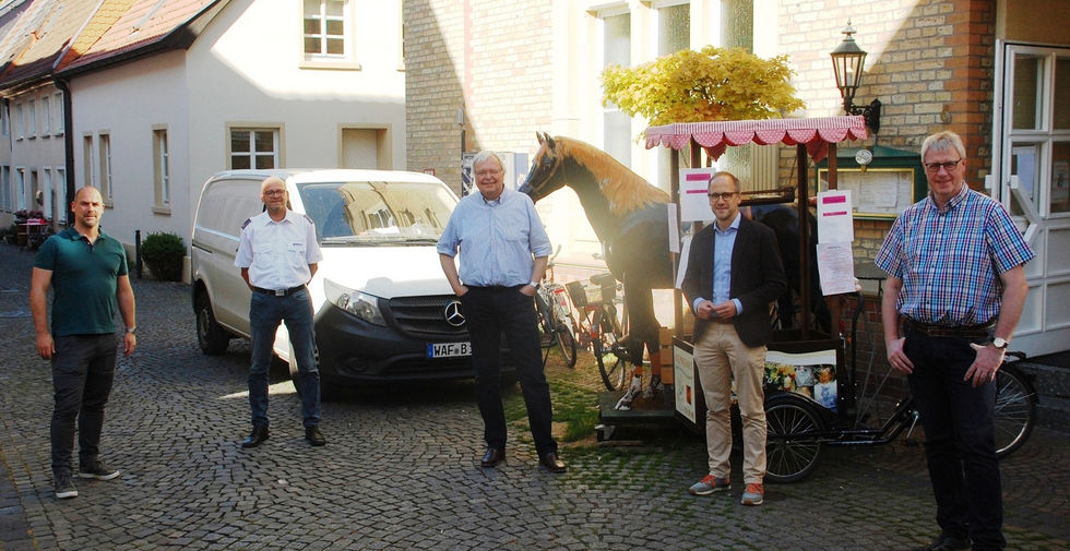 Für den Warenkorb konnte Heiner Schoppmann eine Spende entgegen nehmen. Ehrenamtliche Helferinnen und Helfer versorgen derzeit an die 900 Empfänger mit Lebensmittel, die überwiegend gespendet und abgeholt werden.